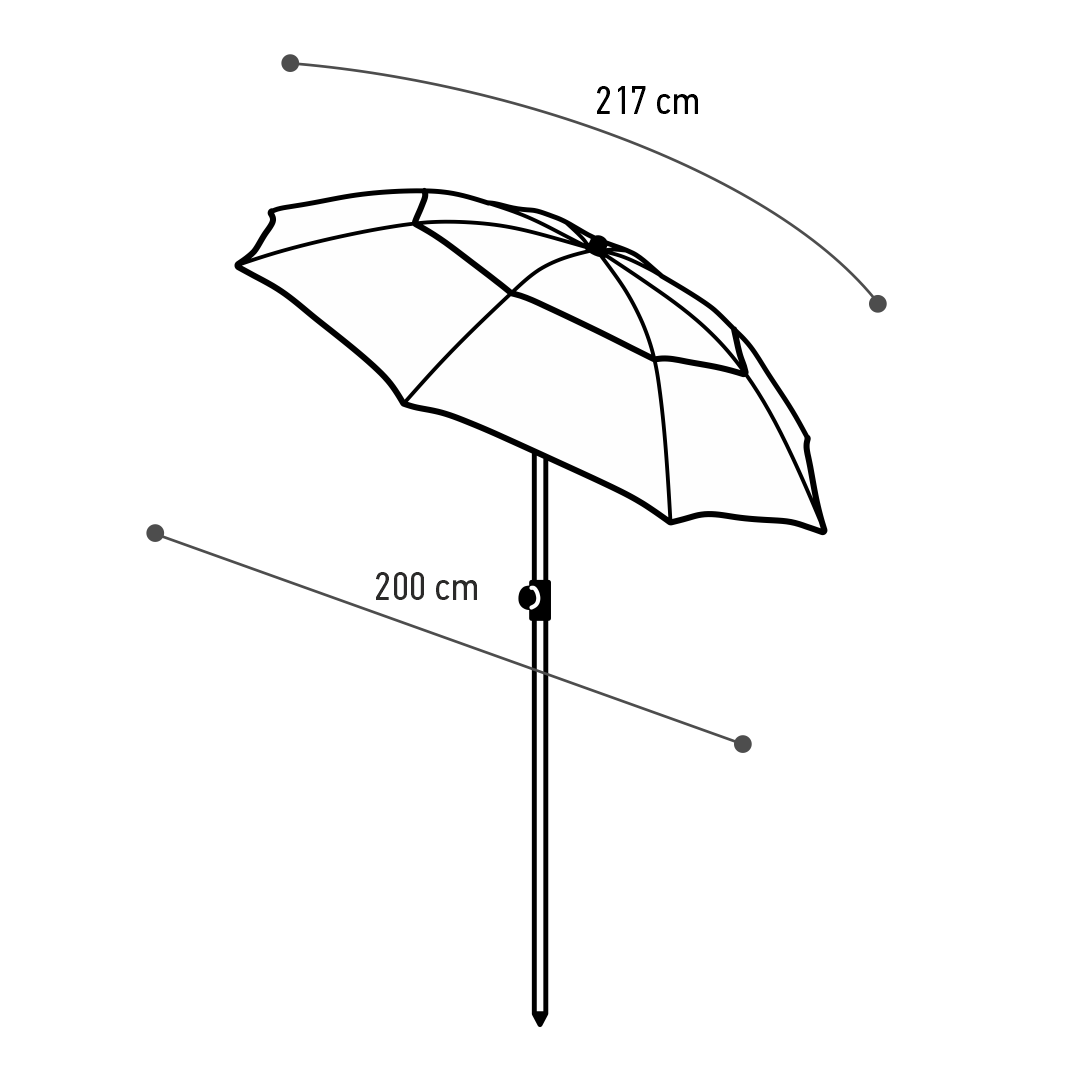 Ελαφριά και πρακτική ομπρέλα παραλίας από 100% ανακυκλωμένο ύφασμα (rPET), κατασκευασμένο από 50 ανακυκλωμένα πλαστικά μπουκάλια. Διαθέτει μηχανισμό ανάκλισης (Tilt) ενώ χάρη στα καινοτόμα χαρακτηριστικά της, προσφέρει άνεση και UPF 50+ αντηλιακή προστασία στην παραλία. Διαστάσεις 200/217 εκ. διάμετρος, Βάρος: 2,05 kg. Υλικό: ύφασμα ομπρέλας παραλίας 100% ανακυκλωμένο PET, UPF 50+ αντηλιακή προστασία, με ασημένια επίστρωση.