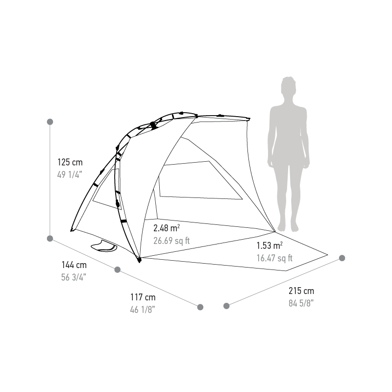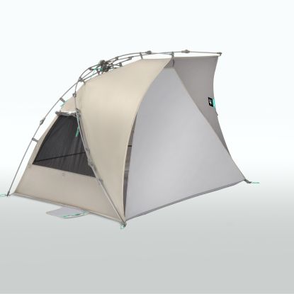 Νέο Σκίαστρο Παραλίας 3 ατόμων. Κατασκευασμένο από 100% ανακυκλωμένο ύφασμα Ripstop RPET, από 86 πλαστικά μπουκάλια. Χάρη στον μοναδικό αυτόματο μηχανισμό ESFTM – Easy Set-Up Frame, ανοίγει εύκολα σε 15 δευτερόλεπτα και κλείνει σε 15 δευτερόλεπτα. Ιδανικό για καλοκαιρινές διακοπές και εξορμήσεις σε κάθε προορισμό, καθώς είναι ανθεκτικό σε άνεμο έντασης έως 7 Μποφόρ. Παρέχει προστασία UPF 50+ από την UV ηλιακή ακτινοβολία. 215x144+117(προέκταση δαπέδου)x125 εκ. (ΜxΠxΥ), Βάρος: 3,3 kg. Υλικό: ύφασμα σκιάστρου 100% ανακυκλωμένο PET, ασημένια επικάλυψη με UPF 50+ για αντηλιακή προστασία. Ύφασμα δαπέδου: 100% ανακυκλωμένο PET Oxford με επικάλυψη PU.