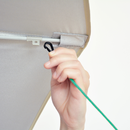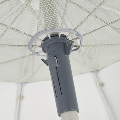 ΠΡΟΣΟΧΗ: Σε περίπτωση που χρησιμοποιήσετε κρουστικό κοντάρι για να σταθεροποιήσετε την ομπρέλα στο έδαφος, βάλτε τον ορθοστάτη στο κοντάρι κατά τουλάχιστον 30 εκατοστά και μην τοποθετήσετε τα πασαλάκια και τα σχοινάκια