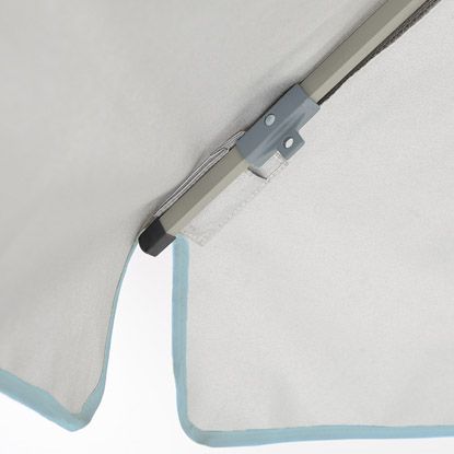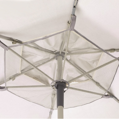 WARNING: In case of using a hammering stake to stabilize the umbrella into the ground, insert the umbrella pole into the stake for at least 30 cm and don’t use the extra stability pegs and cords